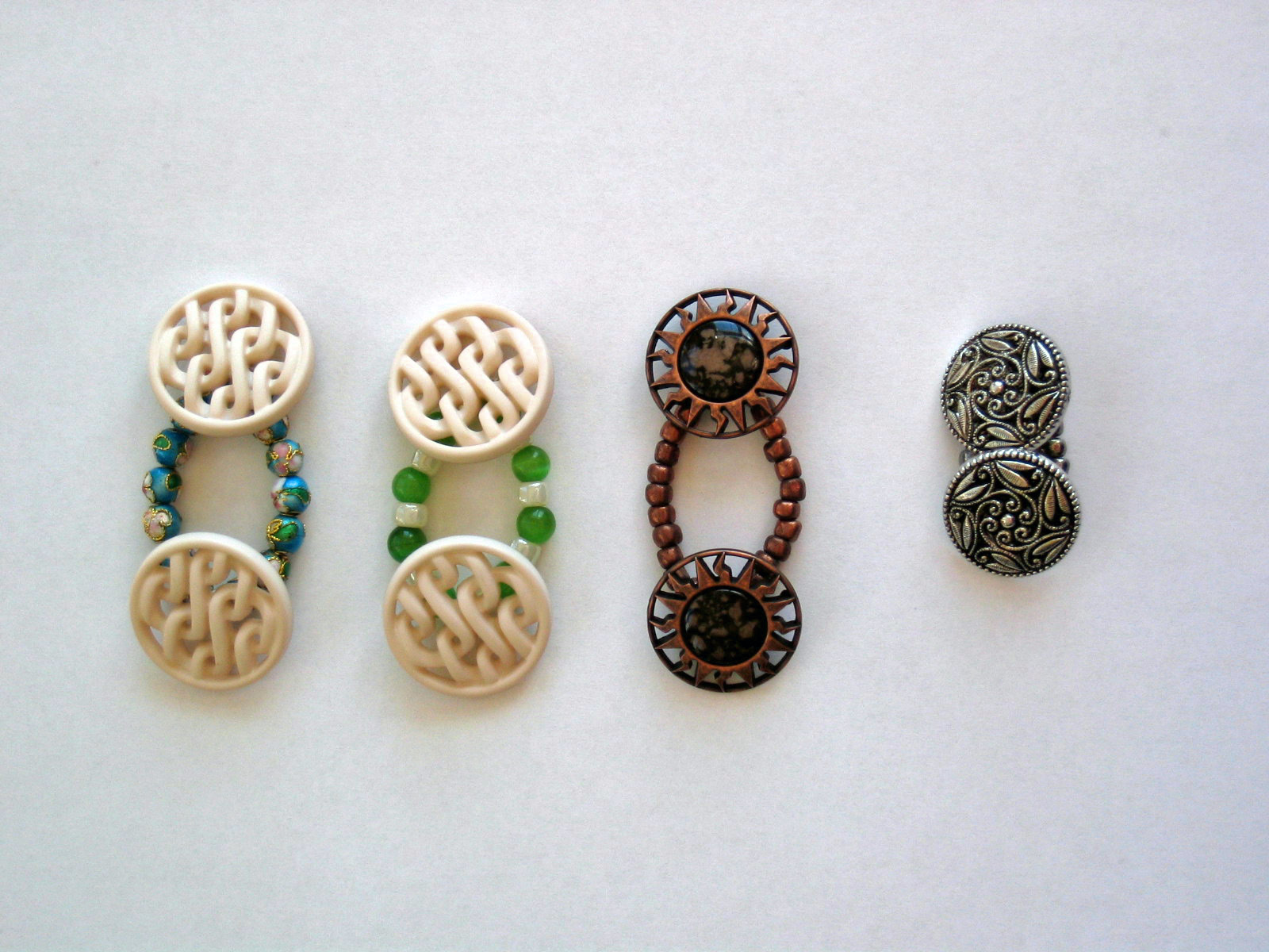 So, you ask, what do I do with my buttons since I obviously never sew them on my crochet. And that’s a valid observation. Once you create a button hole and sew on the button, then you are stuck with the closure. I like to design open fronts that you can wear anywhichway the mood strikes using alternative closures, links, pins and ties. Besides, my collection is so eclectic and consists of so many orphans that the whole lot is totally useless for anything but display purposes. Not that I display them. I keep them safely stored in my collection of cigar boxes.