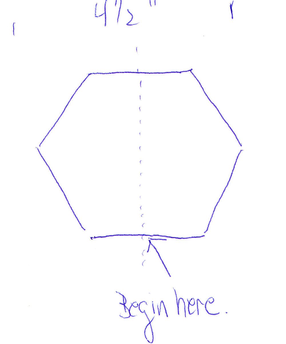 Hexagonal Motif, before assembly= 4 1/2″ at widest point