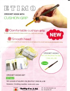 Etimo hooks will not be cheap, probably a dollar or two more than the other more widely distributed Japanese rival hooks, Clover Soft Touch, which retail for $6.99 each. But this tool will last a long time, and must be considered a worthwhile investment. As of today I am aware of no USA distributor or retailer of Tulip Etimo crochet hooks. But that will change.
