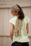 I named this design Orphan Scarf because it is a happy use for an orphaned, partial or lonely ball of any sock yarn. The sample was crocheted with around half a ball of Southwest Trading Company Tofutsies, but any sturdy, smooth sock/fingering yarn would work well. Crocheted loosely in ginormous gauge single crochet, the resulting fabric gets blocked and S-T-R-E-T-C-H-E-D in length. Everyone tells me the stretching part is a giggle, so much fun and quite miraculous.  So, GO.  Download.  Cough up the dime.  Enjoy!