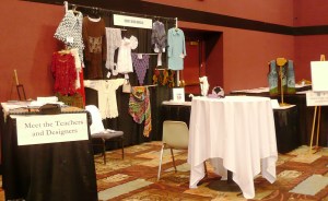 On display were samples and materials drawn from the classes of instructors Susan Lowman, Margaret Fisher, Karen Whooley, Kathie Earle, Vashti Braha, Lily Chin (promoting her class and DVD workshop, Mosaic Crochet), Darla Fanton, Joan Davis (with her new self-published book, 336 Crochet Tips!) and Suzann Thompson (displaying her books Crochet Garden and Crochet Bouquet) plus current designs from friends including Andee Graves and a preview of Ellen Gormley’s new book, Learn Bruges Lace and a special display from Laurinda Reddig, her CGOA 2012 Design Competition grand prize winning vest. There was also chance to see up close my own current published designs, the Rockin Red Dress from the Fall 2012 issue of Interweave Crochet from my last post, and the Pretty Baby skirt from the 2012 Crochet Traditions issue of Piecework magazine.