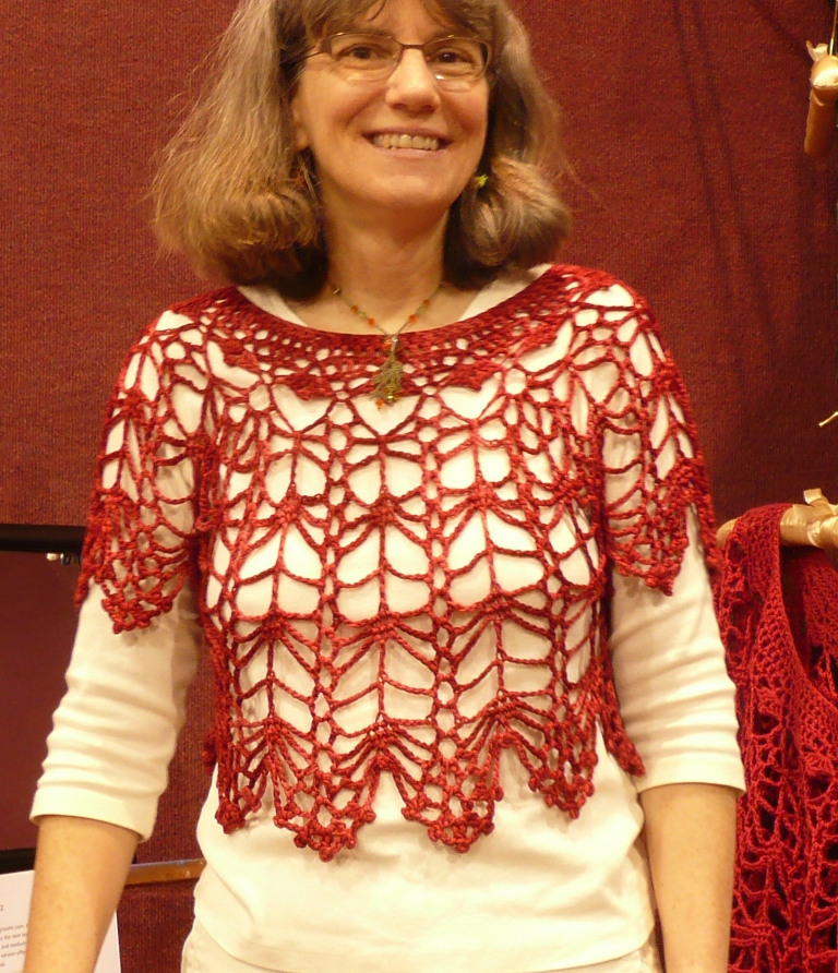 Size 1 DK cropped a Published October 1, 2012 at 768 × 892 in Cat’s Out of the Crochet Bag Cat’s Cradle.v2 Size 1 DK cropped length, fitting lab at CGOA Reno September 2012