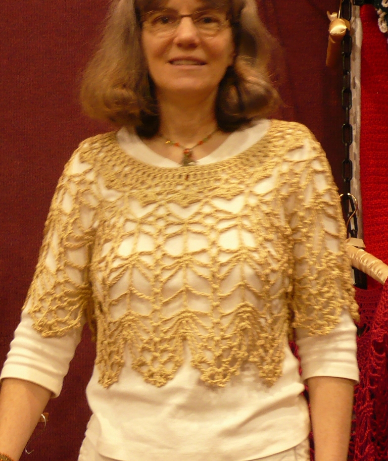 Size 1 full worsted shrug a Published October 1, 2012 at 768 × 913 in Cat’s Out of the Crochet Bag Cat’s Cradle.v2 Size 1 shrug, fitting lab at CGOA Reno September 2012