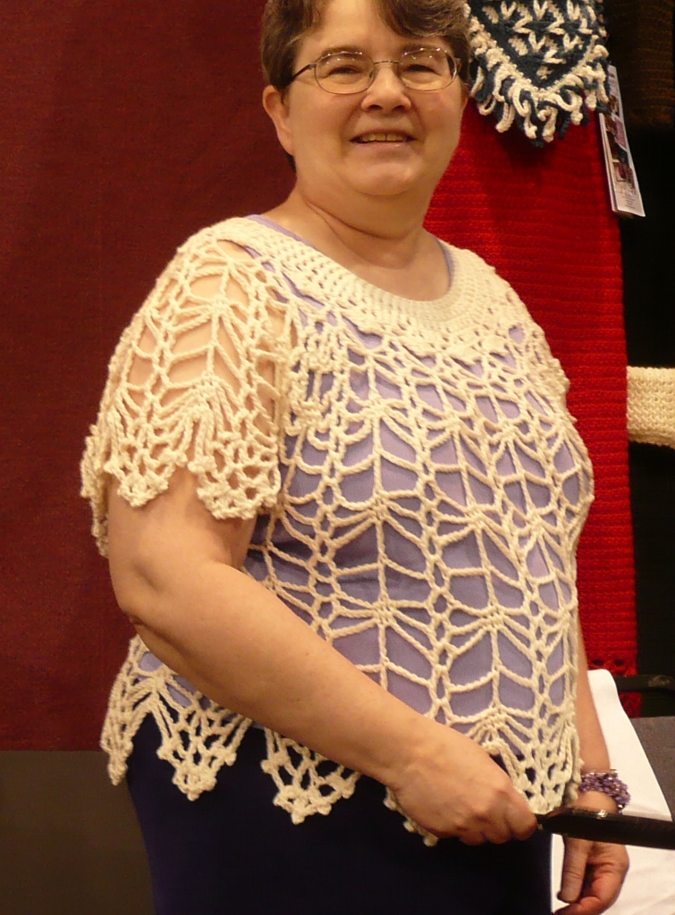 Size 2 Darla Fanton Published October 1, 2012 at 755 × 1024 in Cat’s Out of the Crochet Bag Cat’s Cradle on CGOA instructor Darla Fanton, fitting lab in CGOA Reno September 2012