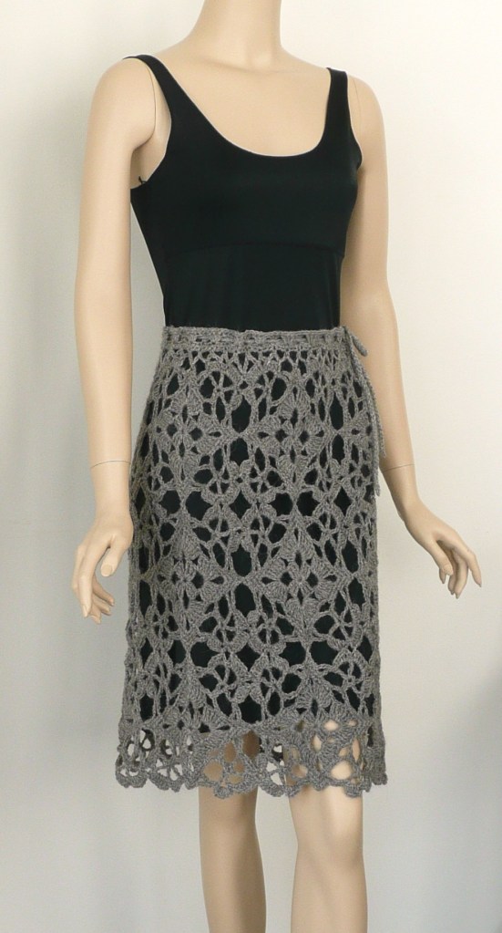 Tabbethia’s Skirt Published January 18, 2013 at 992 × 1843 in The Crocheted Skirt: Fashion Fact or Fantasy? Designed by Doris Chan for Tabbethia Haubold-Magee, Long Island Livestock Company 2-py Sock yarn (llama, wool, nylon) for 2012 show season.