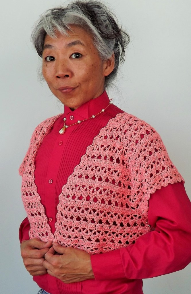 Bolero L wing collar 1 (2) Published May 30, 2014 at 1442 × 2221 in Introducing DJC Lotus Bolero: Crochet Conference Ready DJC Lotus Bolero 42/L DJC Lotus Bolero, in Lotus Peachy Sheen, size 42/L