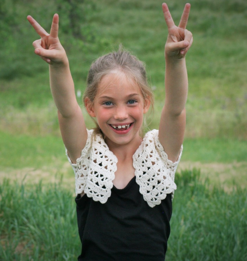 Girl 24 front 1 Published May 30, 2014 at 2279 × 2407 in Introducing DJC Lotus Bolero: Crochet Conference Ready DJC Lotus Bolero girl 24/S DJC Lotus Bolero, in Lotus Pearly Pearl, girl size 24/S; photo courtesy of Linda Dean