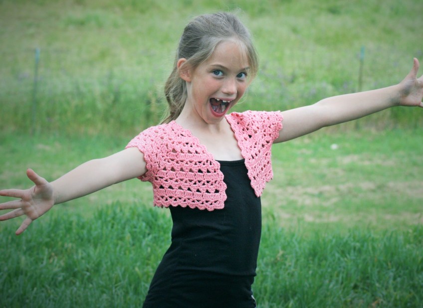 Girl 26 front 2 Published May 30, 2014 at 3004 × 2192 in Introducing DJC Lotus Bolero: Crochet Conference Ready DJC Lotus Bolero girl 26/M DJC Lotus Bolero, in Lotus Peachy Sheen, girl size 26/M; photo courtesy of Linda Dean