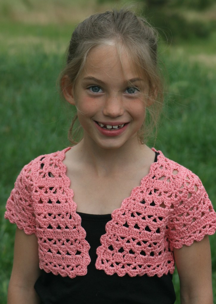 Girl M front 3 Published May 30, 2014 at 2458 × 3465 in Introducing DJC Lotus Bolero: Crochet Conference Ready DJC Lotus Bolero girl 26/M DJC Lotus Bolero, in Lotus Peachy Sheen, girl size 26/M; photo courtesy of Linda Dean