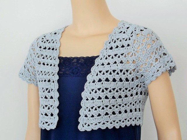 Lotus Bolero Front Published May 30, 2014 at 640 × 480 in Introducing DJC Lotus Bolero: Crochet Conference Ready DJC Lotus Bolero 32/XS front DJC Lotus Bolero, in Lotus Satin Grey, size 32/XS