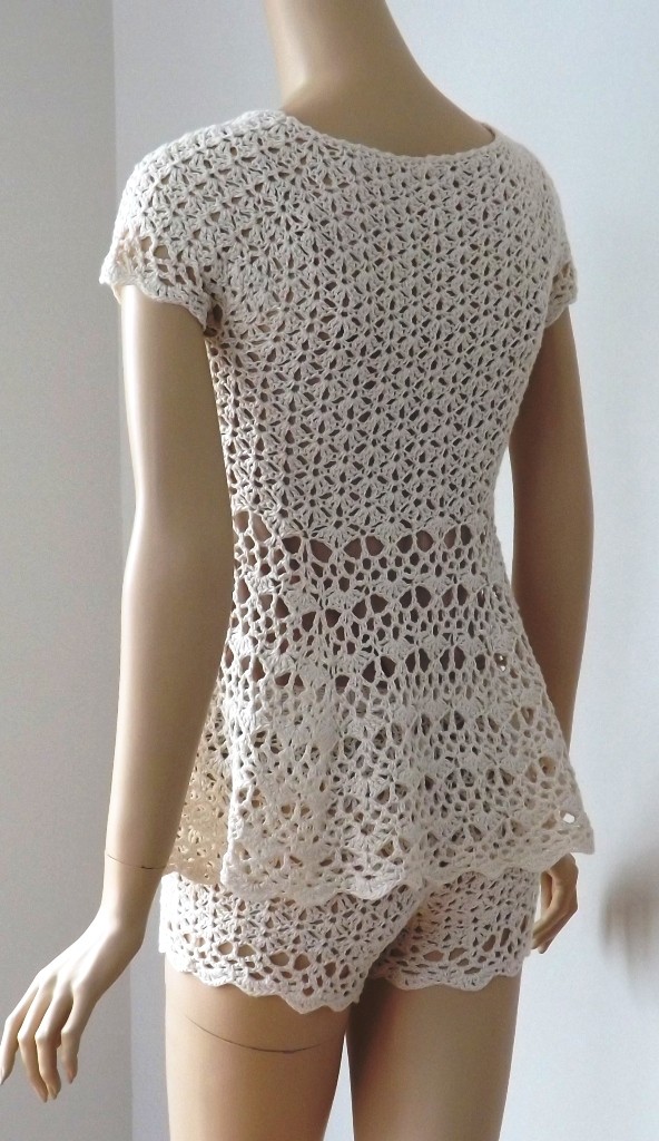 Babydoll back Published January 9, 2014 at 592 × 1024 in Babydoll back Babydoll Babydoll sleepset crocheted in DesigningVashti Lotus, Pearly Pearl. Patterns for top and pants coming soon to DJC Designs.