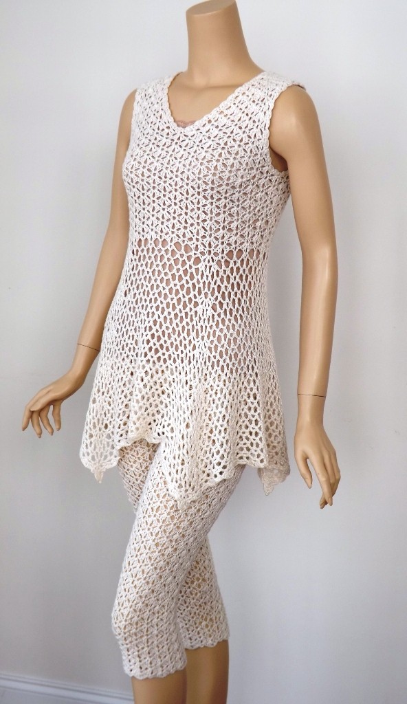 Capri Pants Published January 9, 2014 at 592 × 1024 in Capri Pants Tunic and Capris Capri pants and tunic crocheted in DesigningVashti Lotus, Pearly Pearl. Pattern for pants and top coming soon to DJC Designs.