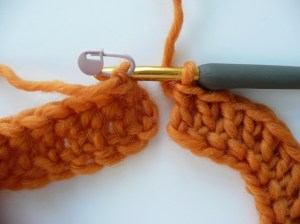 TUTORIAL 9 — Reach over, insert hook in marked first chain.