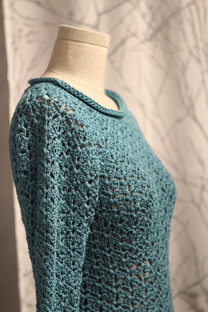 Kolika Sweater Published May 14, 2013 at 683 × 1024 in Kolika Sweater Kolika dress sample, from Top Down Seamless Crochet DVD Workshop (Interweave Press, May 2013), with Doris Chan.