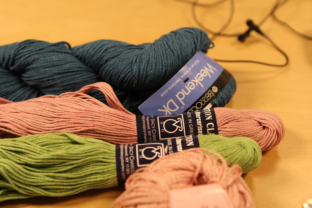 Sample Yarns 1 Published May 14, 2013 at 1024 × 683 in Sample Yarns 1 Kolika sample and demo yarns, Berroco Weekend DK and Tahki Cotton Classic, from Top Down Seamless Crochet DVD Workshop (Interweave Press, May 2013), with Doris Chan.
